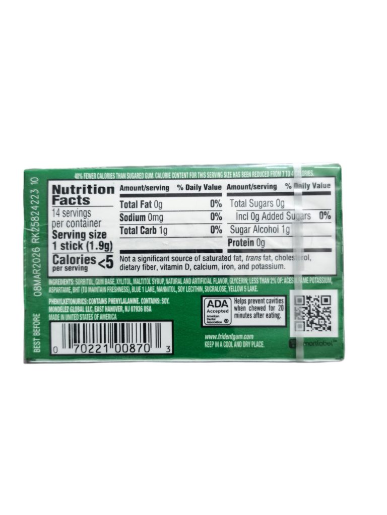 • کالری: کمتر از ۵ کیلوکالری در هر آدامس